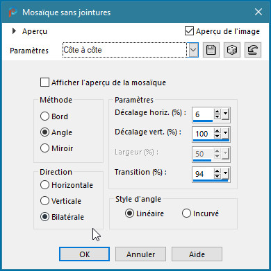Effet /effet image /Mosaïque sans jointures –côte à côte