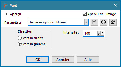 Effet /distorsion /Vent 100 / coché vers la gauche