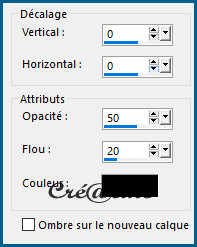 Effets/Effets 3 D/ Ombre portée 0 0 50 20 Noir