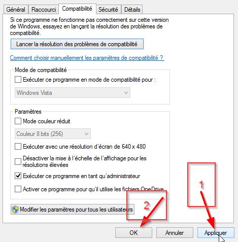 Clic droit dessus et cliquer sur propriété /comptabilité Et cocher exécuter en tant administrateur
