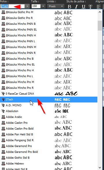 Ouvrez votre Psp maintenant Ouvrez un nouveau calque et activer votre outil texte et allez chercher votre police que vous avez sélectionné dans votre petit logiciel