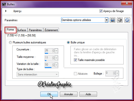 Ouvrez une image de 60/60 transparent Effet/effet artistique/bulle Cliquer sur forme