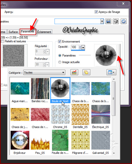 Cliquer sur paramètres/sélectionner boule de Noël ou autres textures