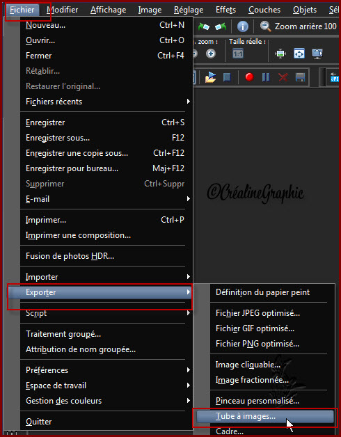 ****************** Nous allons l’exporté dans notre dossier « Tube à Image » Pour l’utiliser ultérieurement Fichier/Exporter/Tube à Image