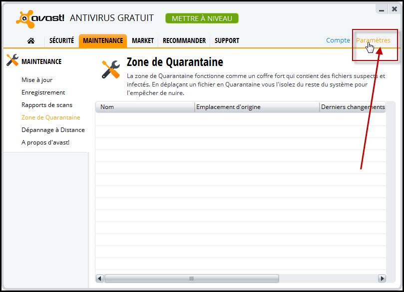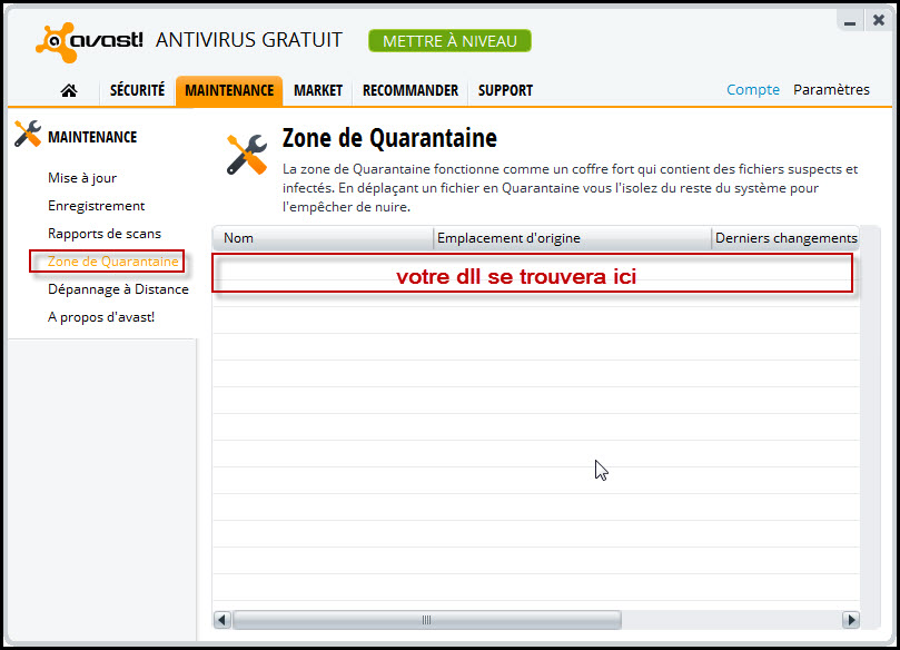 1 Première chose à faire Double clic sur votre icône d’Avast Maintenance/Quarantaine