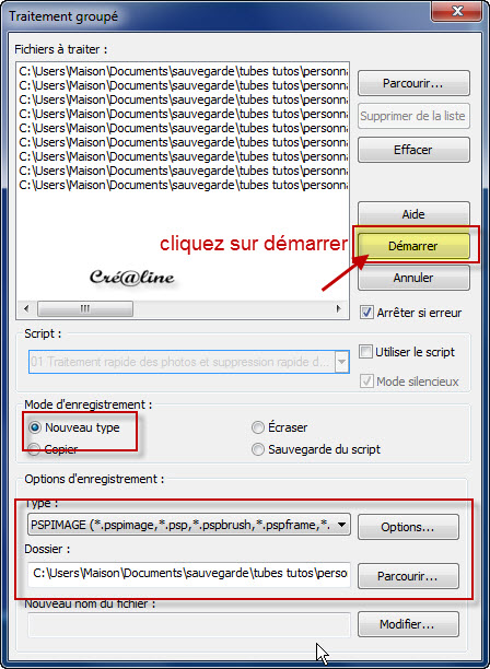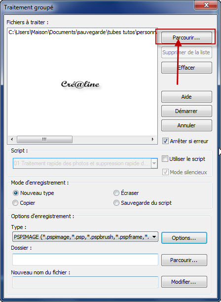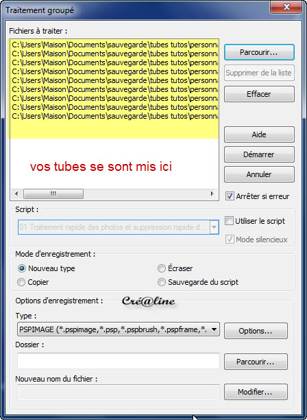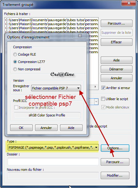 Pour ma part je ne les écrase pas /si au cas ou il y aurait un problème Coché Nouveau type ***** Dans type vous allez sélectionner PSPIMAGE Et cliquer sur option pour les mettre en Psp 7