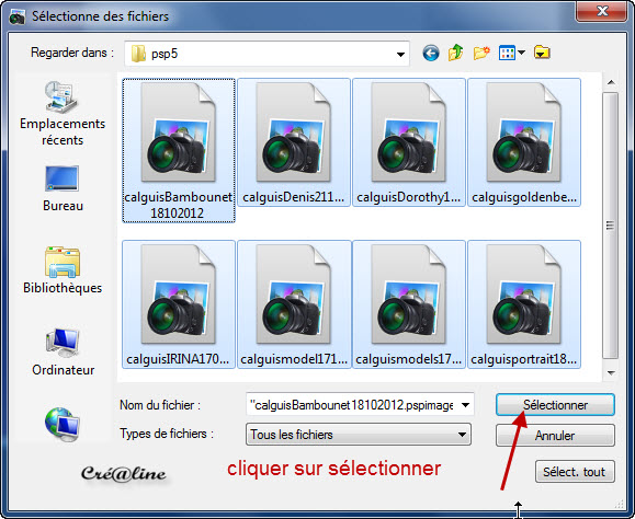 Allez chercher le dossier de vos tubes à transformer (exemple comme je vous ai donné ci-dessus votre fichiers avec vos tubes Psp 5)