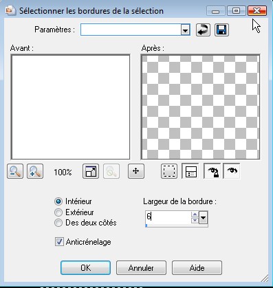 Pour réalisé un masque on travail trois couleurs noir, gris ,blanc ,des fois le blanc vous pouvez le remplacer par gris clair Ouvrir un calque 600/450/noir Faite affichage et cliquer sur règle/pour vous guider Calque/nouveau calque raster Prendre votre outil sélection/octogone/mode ajouter/progressivité 0 Dessiner un octogone /remplir de la couleur Blanche Sélection/modifier/sélectionner les bordures de la sélection/mettre sur 6/ Capture d'écran