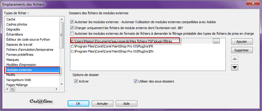 Que vous ajoutez dans le fichier mes Fichiers Psp ou My Psp Files Ou Pour le Psp X4 et X5 il s’appelle tout simplement corel paint shop pro