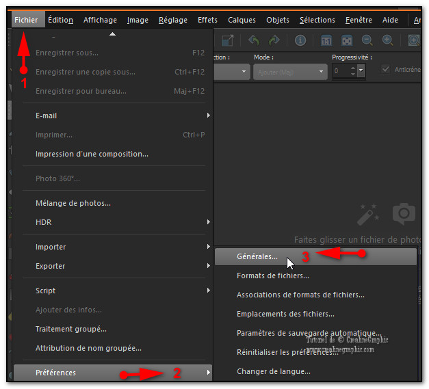 Dans les nouveaux Corel Paint Shop Pro depuis la version X7 ,le design des propriétés des Styles & Textures à changé Vous préfèreriez la version classique !!! Depuis la version X8 Corel nous a entendu et a remédié à ce problème Je vais vous montrer en quelques clics, comment la retrouver Tout d’abord ouvrez votre Paint shop pro Fichier /Préférences / Générales