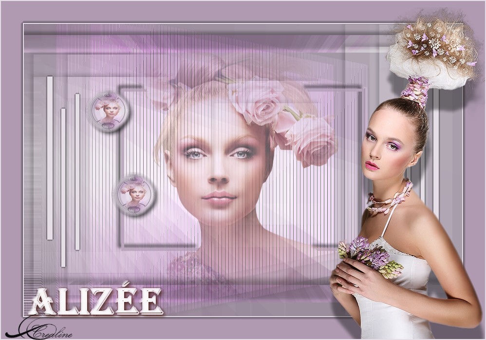 Fusionner avec le calque inférieur 16. Image/encadrement extérieur/larg. 2 /couleur arrière plan Activer votre tube texte Alizée /copier/collé sur votre tag Place en bas à gauche Calque/effet bord/contour progressif /rayon à 2 Calque/fusionner tout les calques Signer votre travail ******************* Voila c’est terminée Enregistrer en JPEG J’espère que ce tutoriel vous a plu ©Crealine 28 Mai 2012 Un autre Modèle