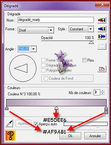 Fichier/Nouveau/900/600 blanc Préparée un dégradé Filtre/modules externes/dégradé Nb couleurs 3