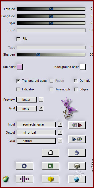 Fusionner avec le calque inférieur 3. Calque/dupliquer Transformation paramétrée/échelle à 30 % Calque/center le calque/dans l’image Filtre/8bf/Flaming Paer/Flexify 2