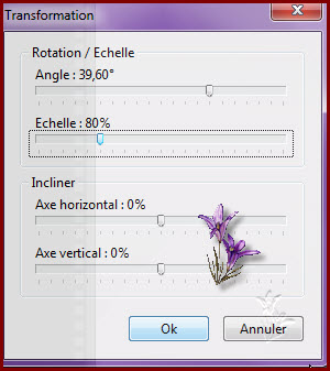 Sélectionner les parties blanches Touche /suppr Masque la sélection Calque /effet bord/lisser 4. Calque/dupliquer Transformation paramétrée /échelle à 70 % Paramétrage manuel/Manuel coché X 542 et Y 72 Effet bord/lisser Calque/dupliquer Transformation paramétrée/échelle à 60% Paramétrage Manuel X 744 et Y 263 Effet bord /lisser Fusionner avec le calque inférieur/répéter 1 fois Ombre portée X 3 Y 3 opacité 30 Fusionner l’ombre Refaire en négatif X -3 et Y -3 Fusionne l’ombre Transformation paramétrée