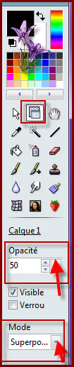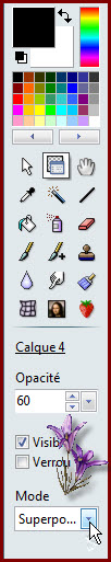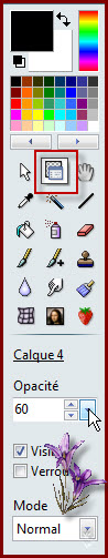 Activer votre pot de peinture/ Remplir la sélection avec la couleur avant plan / foncé (clic gauche) Baisser l’opacité de ce calque sur 60