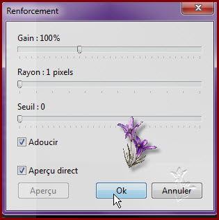 Edition/copier/édition/coller sur votre tag Filtre/netteté/contour net Clic droite sur votre tube/paramétrage manuel