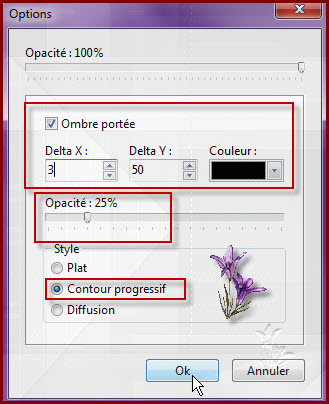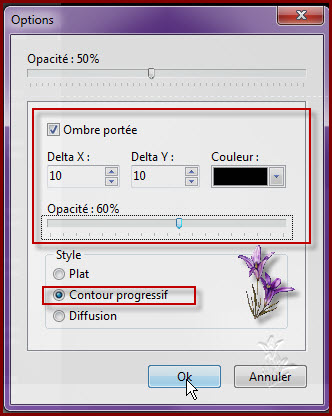 fusionner l'ombre Calque /dupliquer Clic droit sur le calque/paramétrage manuel