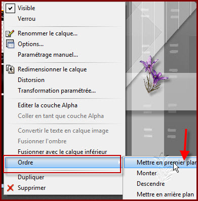 Clic droit dans la vignette de la copie (calque 5) Dans la fenêtre qui s’ouvre /ordre/mettre en premier plan