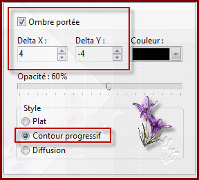 Filtre/netteté/contour plus net fusionner tout les calques 19. Image/contour extérieure de 2 couleurs avant plan (foncé) Activer votre tube texte/édition/copier/édition /collé Sur votre tag/placer à votre convenance Ombre portée par défaut /opacité de l'ombre à 40% Clic droit /fusionner l'ombre Fusionner tous les calques ******************** Voila c’est terminée Enregistrer en jpeg J’espère que ce tutoriel vous a plu ©Crealine 25 Mai 2012