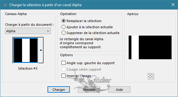 1. Ouvrir votre calque Alpha sélection dans votre psp /Maj D pour le dupliquer Ou Fenêtre /dupliquer Nous travaillons sur la copie Le dossier des sélections pour charger à partir du disque sont également dans le matériel 2. Préparé un dégradé Halo en premier plan avec les paramètres suivant
