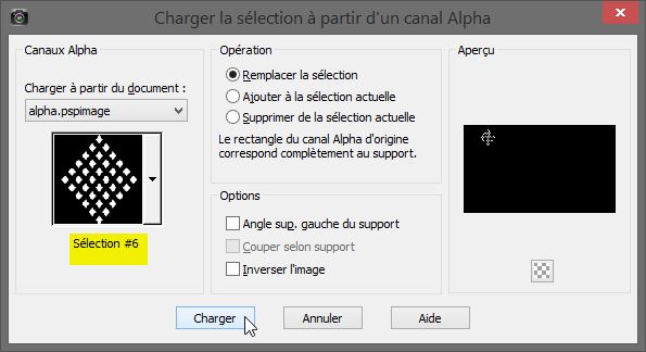 Couleur avant plan : #3a3b3f Couleur arrière plan : #ffffff 1. Ouvrir votre calque Alpha sélection dans votre psp /Maj D pour le dupliquer Nous travaillons sur la copie 2. Préparé un dégradé Halo premier plan Versez ce dégradé dans votre calque 3. Réglage/flou /flou gaussien sur 30 4. Effet /modules externes/Unlimited /&<BKg Designer sf10II/Facet Offset 5. Réglage/Netteté/netteté 6. Effet /effet d’image /Mosaïque sans jointures 7. Sélection/charger à partir du canal alpha la sélection 1 8. Sélection/transformer la sélection en calque 9. Désélectionner tout 10. Effet/modules externes/Unlimited/&<BKg Designer sf 10 I>/Cruncher Passez ce calque en mode Multiplier 11. Effet /effet 3D /ombre portée de 0/0/50/40 noir 12. Fusionner avec le calque du dessous 13. Sélection/Charger à partir du canal alpha la sélection 2 Transformer la sélection en calque 14. Désélectionner tout 15. Effet/Effet distorsion /Coordonnées Polaires 16. Passez ce calque en mode Lumière douce 17. réglage/netteté/netteté 18. Effet/modules externes/Andromeda /Perspective