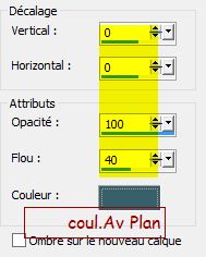 19.bis . Appliquer une ombre portée de 0/0/100/40 couleur av plan