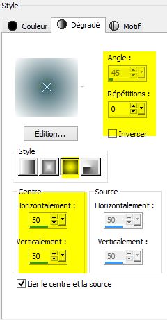 61. Dans votre palette style et texture /préparé un dégradé Halo – premier plan comme ci-dessous