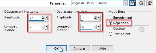 Sélection/transformer la sélection en calque Désélectionner tout Effet /effet distorsion/Vagues