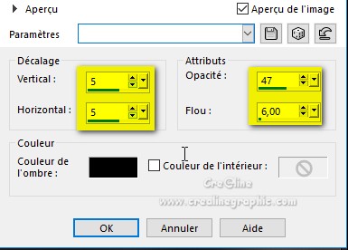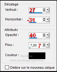 Effet /effet 3D/ombre portée de 0/0/100/40 noir Calque /dupliquer Image /redimensionner à 50 % 5 Activer votre image déco-01- penelope-linette Édition/copier –édition/coller comme nouveau calque sur votre travail Calque /réorganiser /déplacer vers le bas 2 fois Vous avez ceci dans votre palette de calque