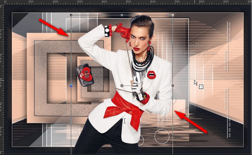 Réglage/netteté/davantage de netteté Sélection/inverser Effet /effet 3D/ombre portée de 0/0/100 /40 noir Désélectionner tout 11 Activer votre tube woman Mina@Christy 15.07.15 Édition /copier –édition/coller comme nouveau calque sur votre tag Image /redimensionner à 60% tous les calques décochés
