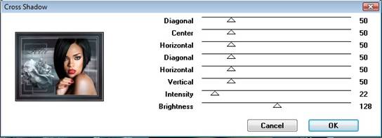 image/ajouter bordure de 3 pixels avec la couleur:#b6b0b2/ajouter une bordure de 5 couleur:#151d20 /ajouter une bordure de 3 pixels couleur :#b6b0b2 Cliquer dans la bordure de 5 pixels avec la baguette magique /appliquez le module externe/Graphic plus/cross shadow /par défaut capture ci-dessous