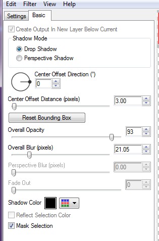 Sélection/inverser Effet/modules externes /perspective shadow Même configuration que précédent