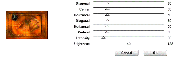 Couleurs avant plan : #941a00 Couleurs arrière plan : #c26804 Préparé un dégradé Halo /angle 0/répétition 5 Allons y on commence Fichier/nouveau 800/500 transparent Remplir avec le dégradé Effet/Art media/coup de pinceau Voir capture