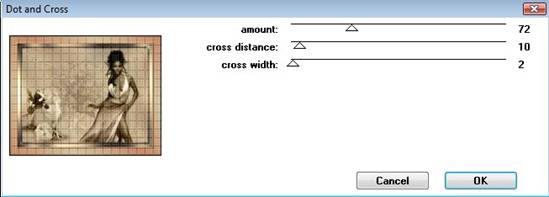 Appliquer le filtre penta com/dot and cross avec ,paramètre par default Appliquer grec factory/pool shadow 50/50/50/50/50/50/128/128 Selection/ inverser, appliquer la même ombre portée que ci-dessus Déselectionner