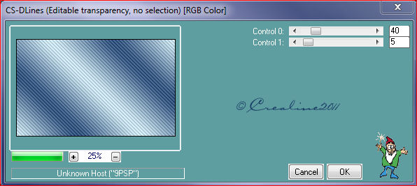 Sélection/charger une sélection a partir du disque select ;crealine-sélec.vague-ange23032011 Remplir du dégradé /désélectionner tout Filtre Modules externes/ Coralaine and Sensibility/CS-HLines