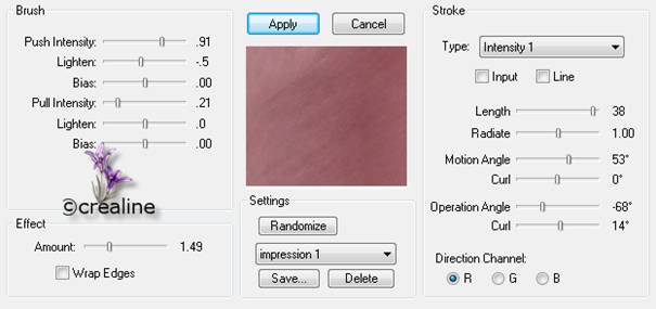6. Effet /effet bord /accentuer 7. Sélection /charger une sélection à partir du disque/aller chercher votre sélection Femme_pendule _1 8. Sélection/transformer la sélection en calque 9. Effet /modules externes/Fantastik Machine/paintengine