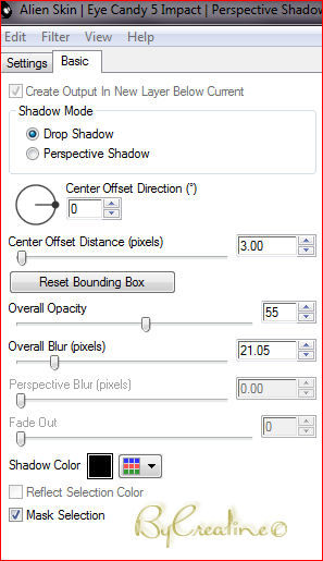 Sélection/inverser/effet /module externe/eyes candy impact/perspective