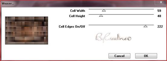 Calque nouveau calque raster/remplir avec un dégradé Hallo angle 45/répétition 3 inversé non coché Effet/modules externes/Toadies/Weaver par défaut