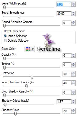 37. Calque /convertir en calque raster 38. Effet /modules externes /Eyes Candy Impact 5/glass