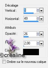 9. Calque/dupliquer/image/redimensionner à de 75%/tous les calques décochés 9. Effet/effet image/décalage
