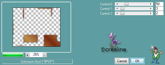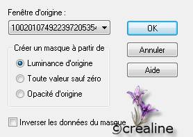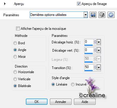 6. Calque/supprimer /répondre oui /fusionner le groupe 7. Appliquer une ombre portée/1/1/40/1 noir 8. Sélection/charger une sélection à partir du disque/crealine_Taïma_1 9. Sélection/transformer la sélection en calque/désélectionner tout 10. Effet /modules externes/VM Distortion/flipper
