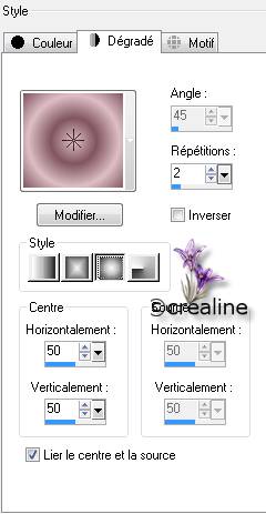 Préparé un dégradé Linéaire Angle 45/répétition 3 /inverser non cocher