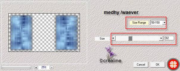 14. Calque/ dupliquer/image /miroir 15. Fusionner avec le calque du dessous 16. Calque /agencer/déplacé vers le bas 17. Refaire le point 16 encore une fois 18. Mettre le calque sur mode multiplier/baisser l’opacité à 60 19. Effet/modules externes /medhy/waever