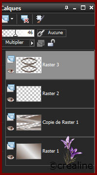 24. Calque /dupliquer 25. Effet/modules externes/Simple/Top Botton Warp 24. Fusionner avec le calque du dessous 25. Baissé l’opacité à 46 /mode Multiplier 26. Effet/effet bord /accentuer d’avantage 27. A ce stade vous avez ceci dans la palette des calques