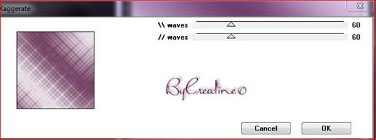 Sélection/charger une sélection à partir du disque Aller chercher la sélection crealineselect-beauty full-1 Calque nouveau calque /remplir avec le dégradé Linéaire Comme précédent /effet /modules externes/fun house/Twister sur 113 Mettre en mode lumière dur/désélectionner tout Effet /effet distorsion /vague