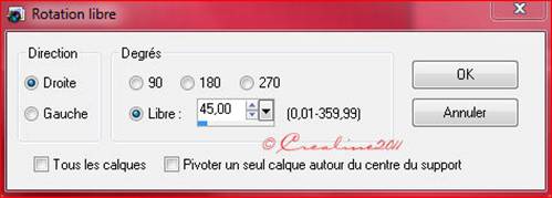 Effet/effet 3 D/ombre portée comme précédent Sélection/Déselectionner tout Image/rotation Libre angle 45/droite