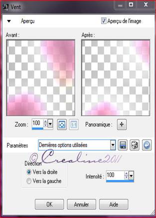 Edition/copier /coller comme nouveau calque le tube eu57rtwq.fleur Placer à droite comme modèle Dupliquer /se remettre sur celui du dessous Réglage / flou /flou Gaussien 20 Effet /distorsion /vent droite intensité 100