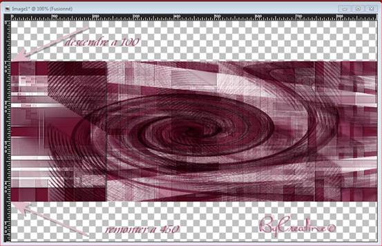 Calque /dupliquer/image/renversé Fusionner calque du dessous Effet /effet distorsion/Torsion /degrés sur 720 Fusionner les calques visibles Activer votre outil sélectionner et mettre les valeurs Comme la capture