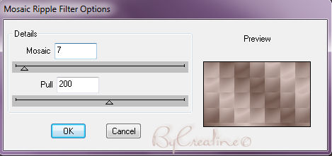 Dupliquer ce calque/image /redimensionner a 80 %/tous les calques décochés Refaire /mosaic ripple/avec les paramètres suivant