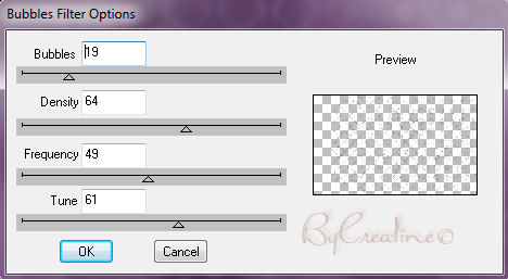 Calque/nouveau calque raster/remplir avec votre dégradé Sélection/modifier/contracter de 20/touche du clavier supprime ou delet /désélectionner tout Effet /modules externes/dsb flux/bubbles